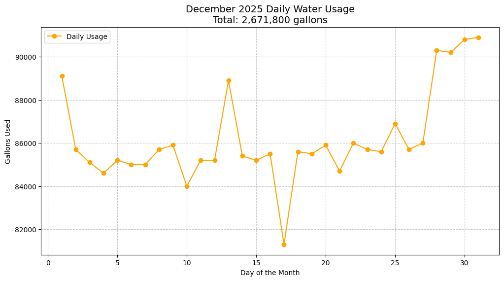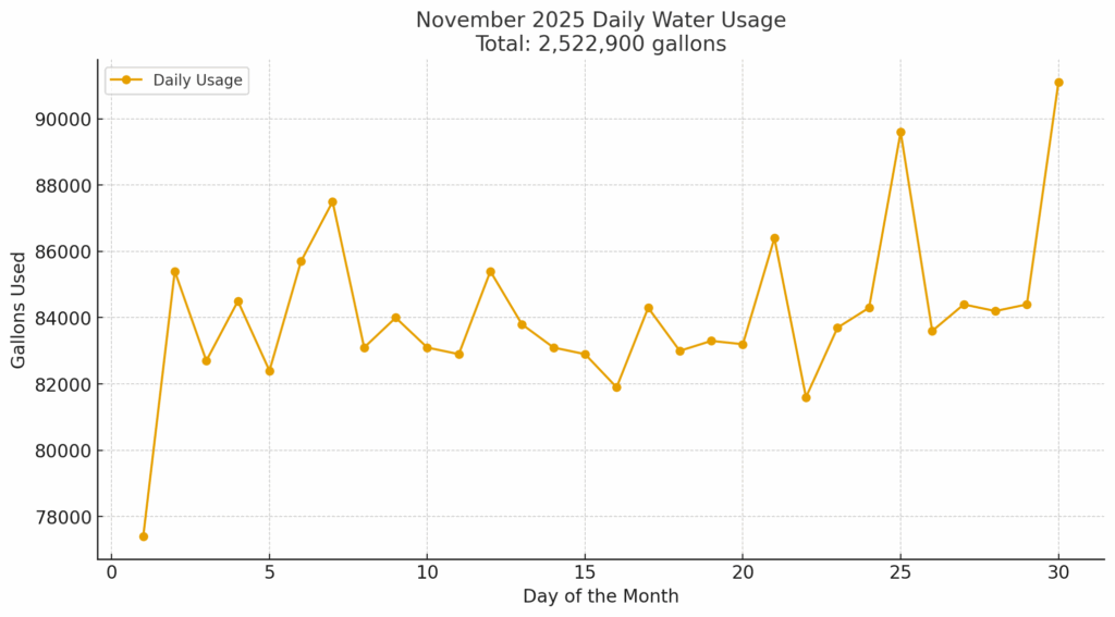 We track daily usage to ensure reliable service and monitor for leaks. Click the plus sign to expand.